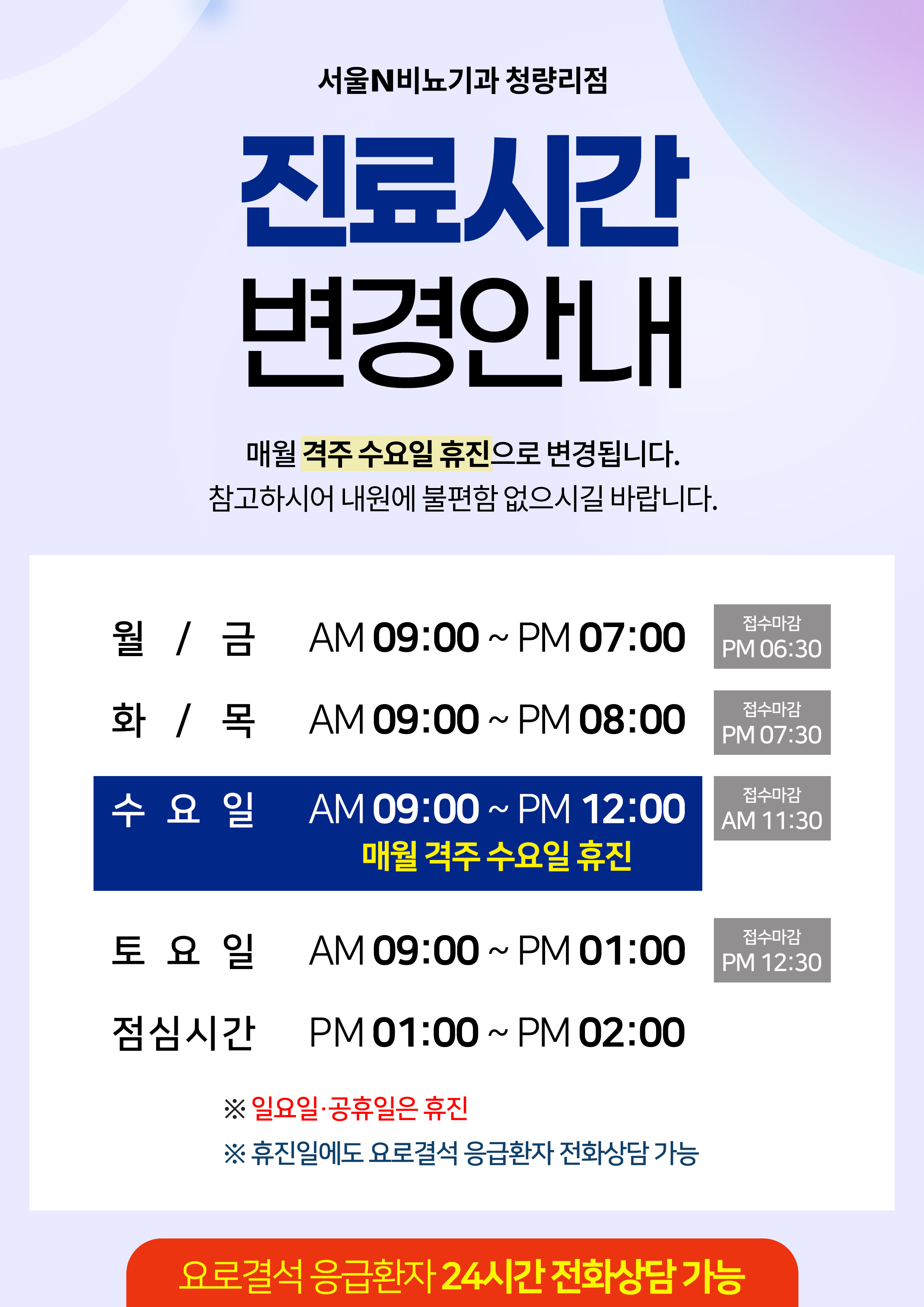 주소 : 서울시 동대문구 왕산로 176, 창현메디컬빌딩 7층 (전농동)